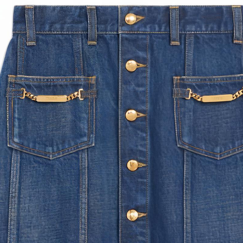 CELINE Button Up Denim Skirt