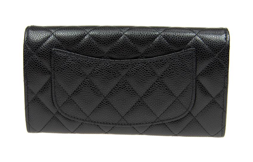 CHANEL Beaded Embossed Calfskin With Metal Accents Card Holder Wallet Women's Black