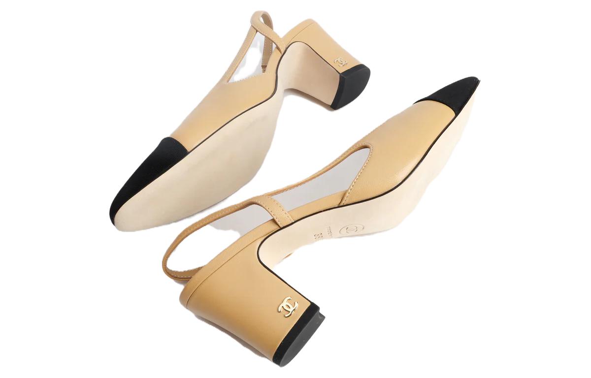 CHANEL Block Heel High Heels 6.3cm Women's Beige