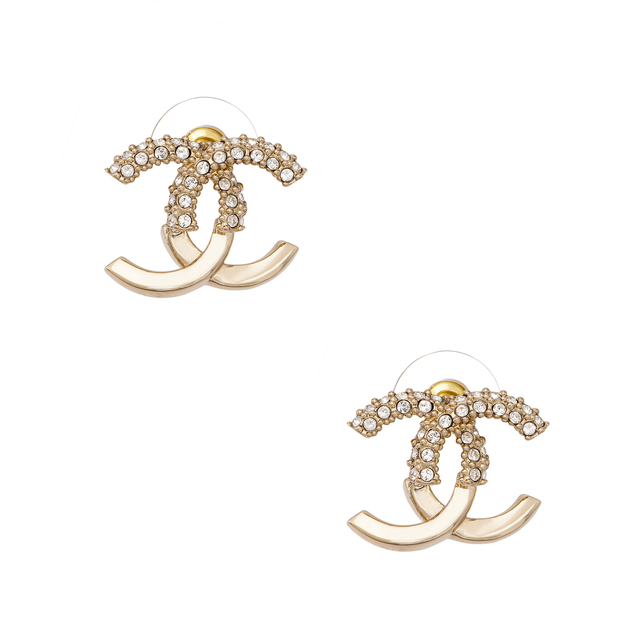 CHANEL Crystal & Gold Metal Strass Stud Earrings AB9451