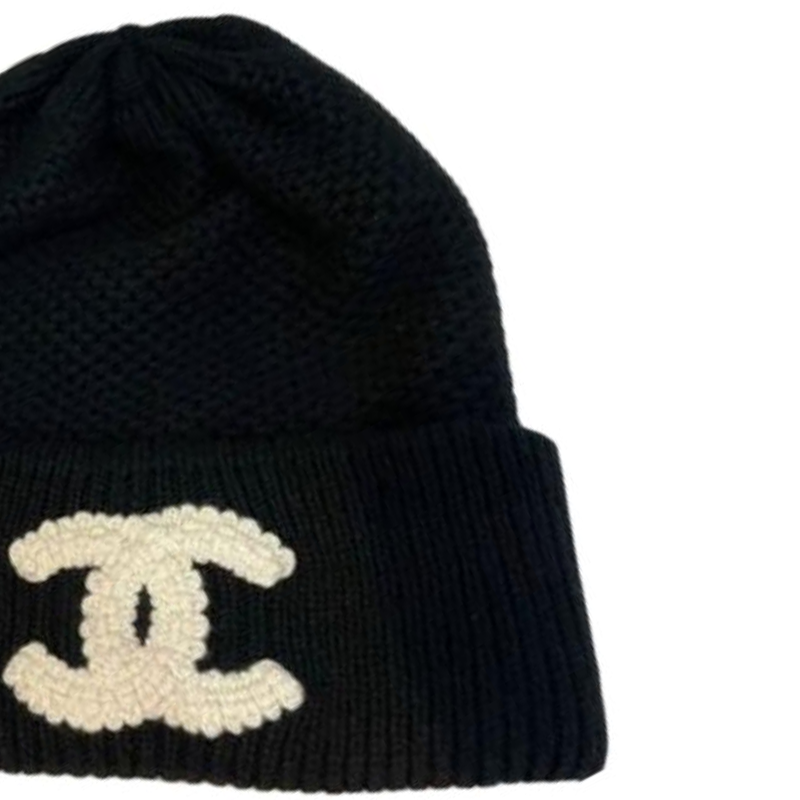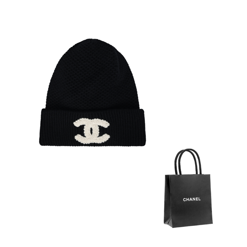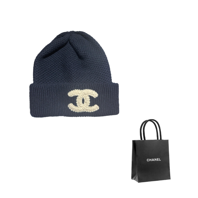 CHANEL Knitted Fabric Cashmere Beanies Women's Black/Dark Blue