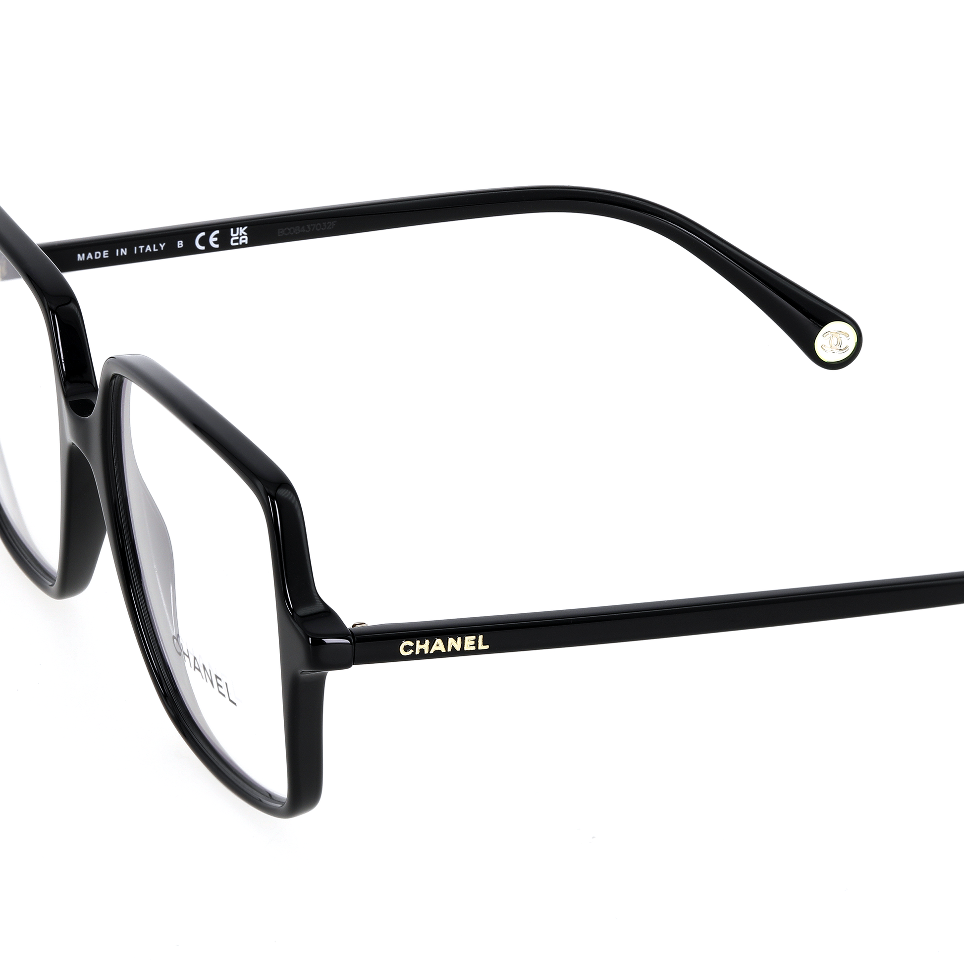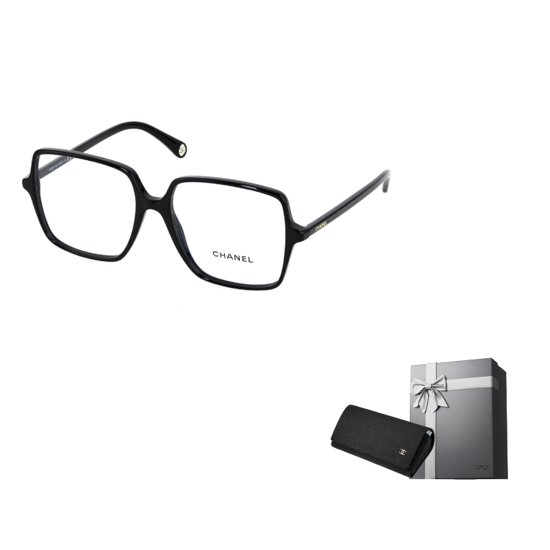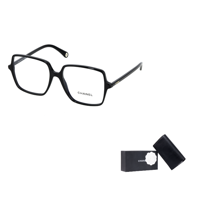 CHANEL Plate Frame Square Eyeglass Frames Unisex Black