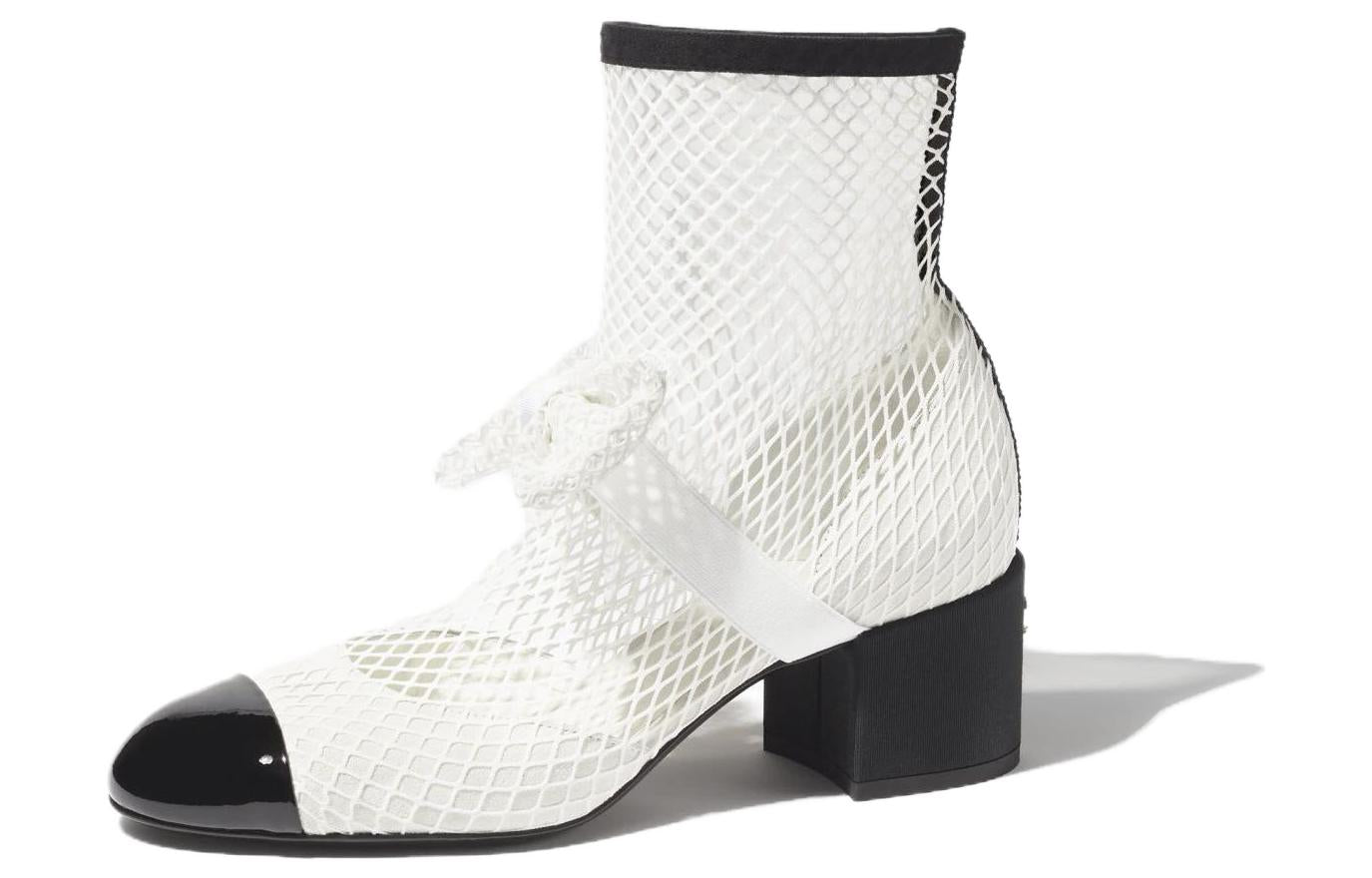 CHANEL Resille 90mm Mary Janes White Black Patent Calfskin