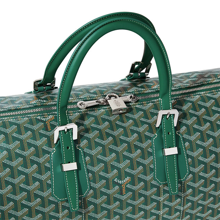 GOYARD Boston Canvas With Leather Portable Crossbody Bag, Travel Bag Medium Size Unisex Green