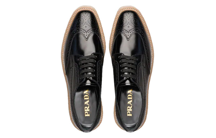 (WMNS) PRADA Brogue Trim Microsole Brushed Leather Shoes 'Black' 1E722E_055_F0002_F_D030